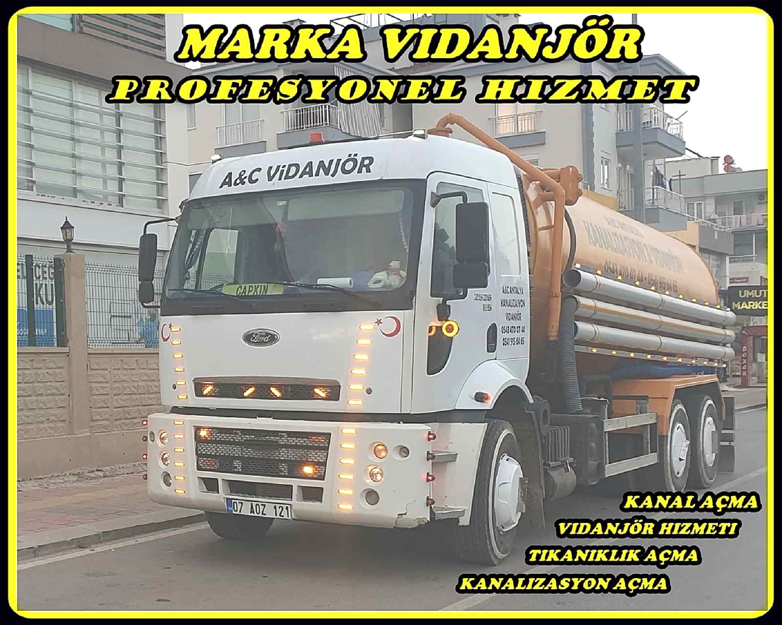 Ekiplerimiz 7 gün 24 saat hizmet vererek Antalya ve Çevresine Kanalizasyon tıkanıklığı , Logar tıkanıklığı , Gider Tıkanıklığı , Lavabo Tıkanıklığı , Vidanjör Hizmeti gibi Birçok Hizmet İmkanına Sahip Olan Marka Vidanjör Sektörde Gururla hizmet etmeye Devam Etmektedir .